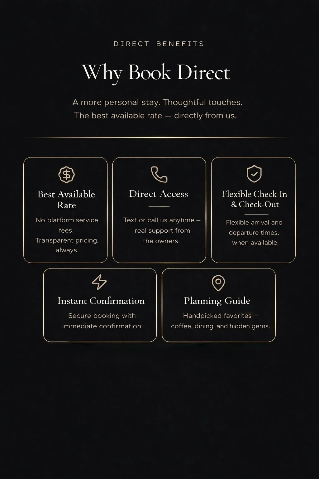 Comfortable seating, open-concept living, spaces made for conversation and connection. Pet-Friendly and thoughtfully designed for memorable stays